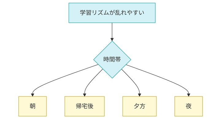 発達障害の中学生が学習リズムを整える際、親御さんが意識しておくべきもう一つのポイントが「リズムの乱れやすい時間帯」です。